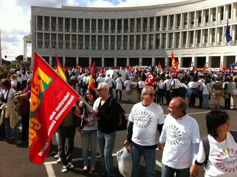 1 OTTOBRE 2010, SEDI INPS CHIUSE PER PROTESTA. A ROMA IN 1.500 ALL'ASSEMBLEA NAZIONALE ALL'EUR.
