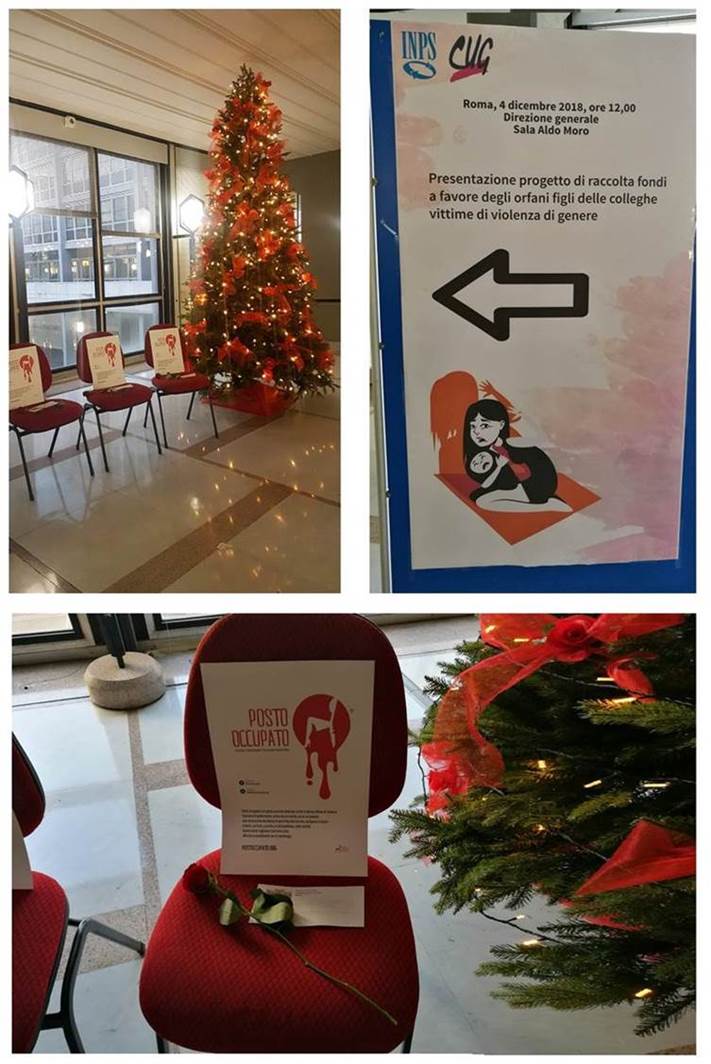 Da un’idea della Consigliera CUG della USB, Nadja Vitale, subito fatta propria dall’intero Comitato Unico di Garanzia e dal direttore generale Gabriella Di Michele, ha preso forma un progetto di solidarietà concreta rivolto ai figli di tre colleghe dell’Istituto vittime di femminicidio. In sala c’era Valentina, la figlia di una delle tre lavoratrici, che ha rilasciato una toccante testimonianza. Nell’atrio della direzione generale è stato allestito un albero addobbato con nastri e rose rosse, a richiamare la vicinanza e l’affetto verso tutte le donne vittime di violenza e la doverosa attenzione verso un fenomeno che purtroppo assume dimensioni sempre più preoccupanti. Accanto all’albero tre poltroncine con tre rose rosse e le foto con i nomi delle tre colleghe: Marisa, Daniela e Rosanna.