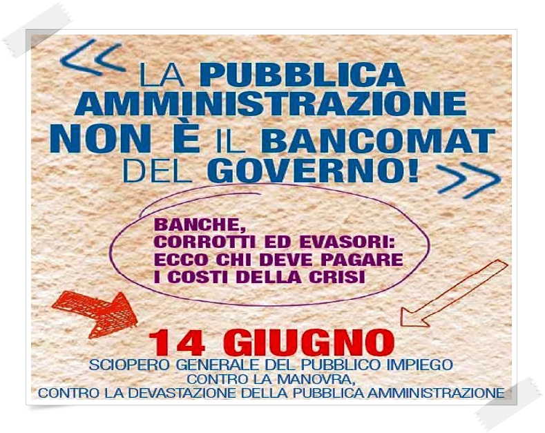 Siamo quasi alla vigilia dello sciopero generale del pubblico impiego, proclamato dalla USB e dai COBAS per l’intera giornata di lunedì 14 giugno contro la manovra finanziaria del governo.