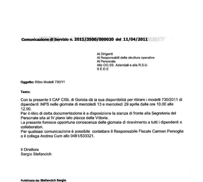 Non solo il dott. Stefancich produce con un atto istituzionale uno spot pubblicitario per la CISL, ma arriva addirittura a sostituirsi al CAF CISL mostrando un’evidente ambiguità di ruolo. Se invece si dovesse trattare di confusione linguistica, ancor di più si renderebbe necessaria la rimozione dall’incarico del direttore di Gorizia, in ossequio a quella meritocrazia spesso invocata da codesta amministrazione per il personale sotto inquadrato e sotto pagato.