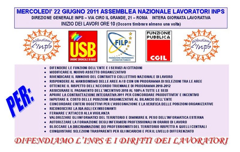 MERCOLEDI' 22 GIUGNO 2011 ASSEMBLEA NAZIONALE DEI LAVORATORI INPS