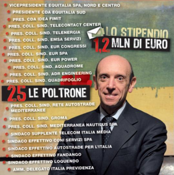 Abbiamo battezzato questa iniziativa “No Mastrapasqua Day” perché il Presidente dell’Inps, Antonio Mastrapasqua, rappresenta a buon diritto il caso emblematico: occupa più di venticinque poltrone, in taluni casi in palese conflitto di interesse, per un reddito complessivo di circa 1,2 milioni di euro.